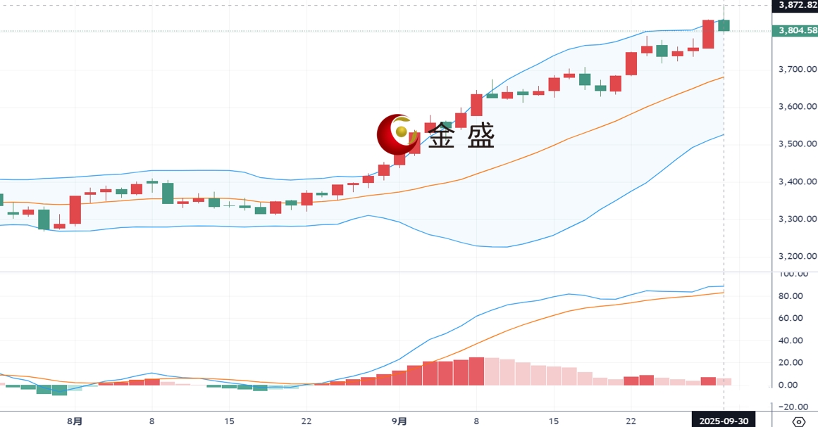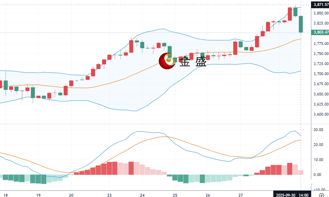 现货黄金周二(9月30日)开市于3833.10美元/盎司,盘中涨势延续并刷新历史高位至3871美元/盎司附近暂时止步,欧盘直接大跳水,目前刚好刺破3800。在地缘政治紧张局势升级的背景下,美国政府可能停摆的风险强化了避险黄金的需求。除此之外,市场对美联储进一步降息的预期不断增强,成为推动资金流向无息资产黄金的另一关键因素。