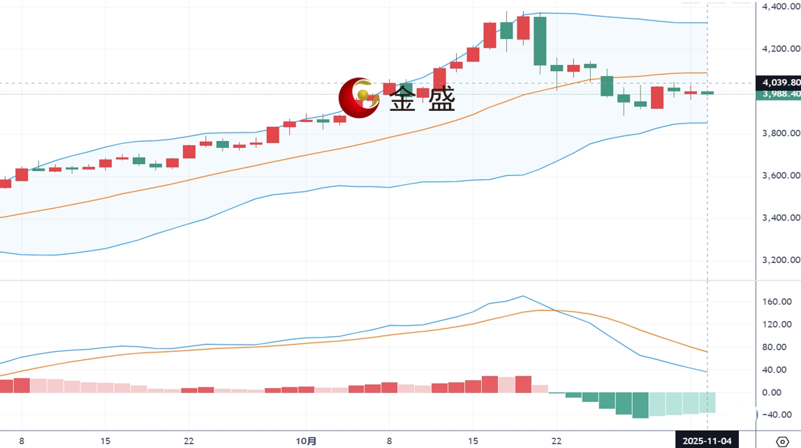 现货黄金周一(11月3日)亚市早间开盘于3990.50美元/盎司,最高4030.57美元/盎司,最低3962.20美元/盎司,收盘4001.38美元/盎司,全天波幅约68美金,当日涨幅约0.03%。