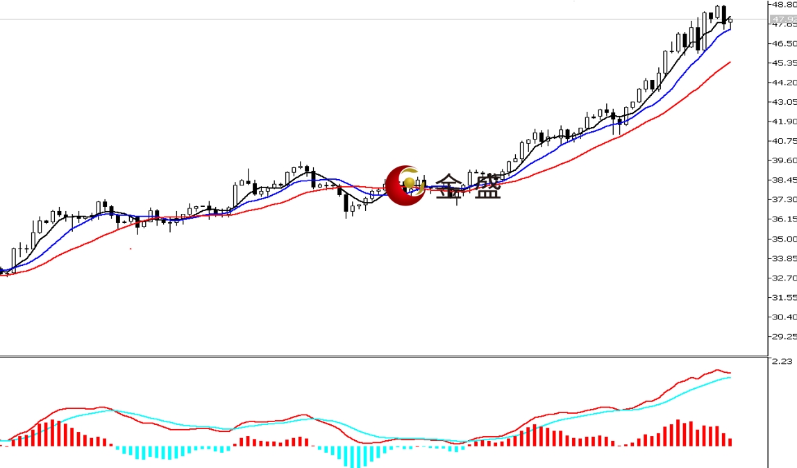 前一个交易日,白盘时段,行情承压上周五高点48.6美元一带震荡下行,午后短暂跳水刺破48美元大关。晚盘时段,白银再度承压早盘高点持续下行,盘中一小时下挫近一美金,价格创当日低点47.32美元,最终收阴线。均线系统多头排列,对价格上涨构成支撑。MACD指标快慢线零轴上方现金叉,做多的动能减弱。白银上涨趋势不变,多头势能有减缓迹象。近两日多空围绕48美元一带,K线形成阴包阳结构,但高位反转信号还需观察。短期看高位休整,操作上调整做多为主。