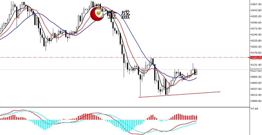 前一个交易日,美指上行受阻逾99美元关口收阴。黄金宽幅震荡为主,多头坚守四千大关,全天波动逾一百五十美金,最终收跌0.63%。今天白盘行情波动降低,价格延续昨日的高低点内运行。小时周期,均线系统收敛向上拐头,对价格反弹形成支撑。MACD指标快慢线零轴下方现金叉,做空的动能有为主。黄金连续两日调整,昨日出现强势反扑现象,确认四千一带支撑明显。短期行情进入暴跌后的整理,价格可能围绕图示的区间震荡,操作上高抛低吸。