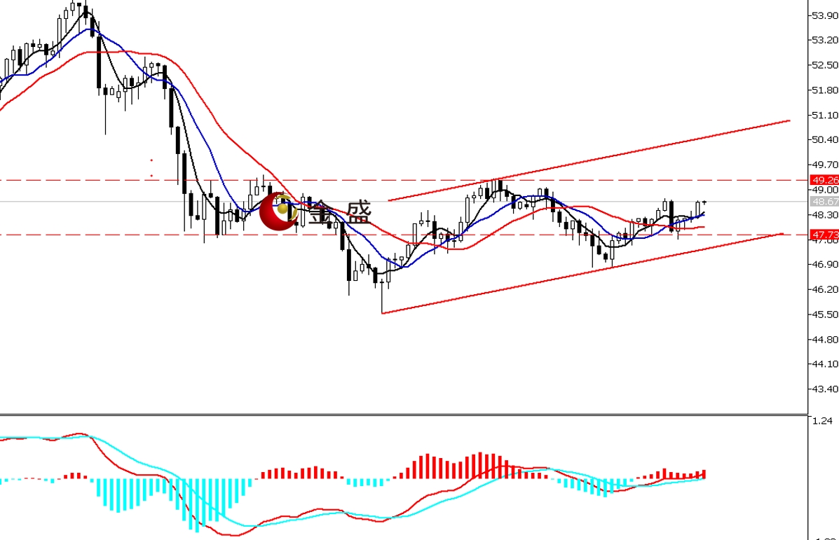 上方阻力:49—49.3  49.6—49.8  50