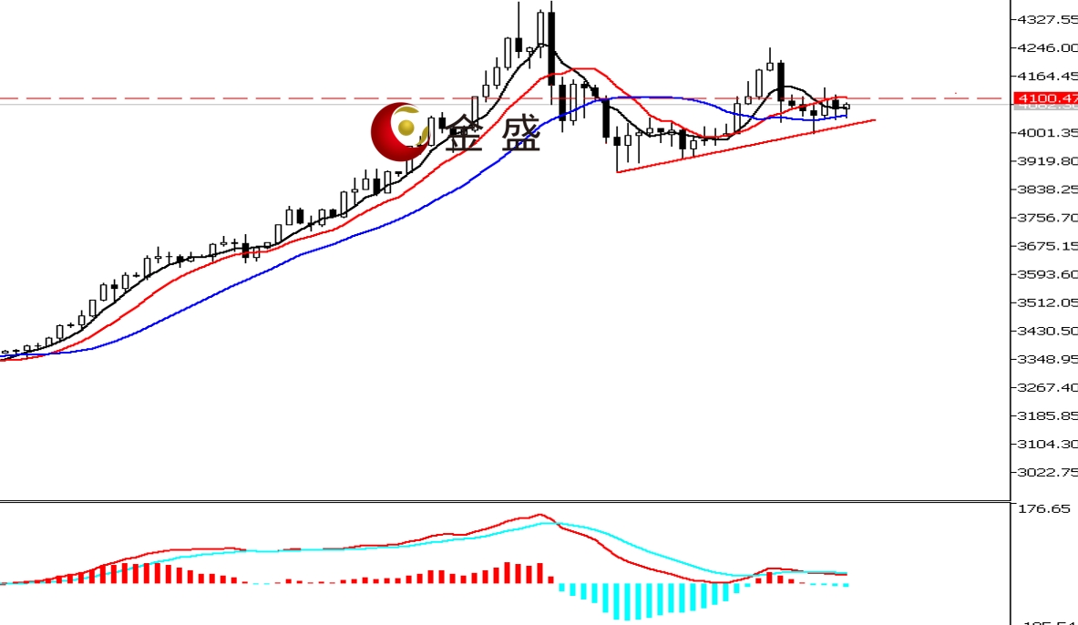 前一个交易日,早盘时段,黄金一小时拉升三十美金,价格创4109.88美元,随后快速下挫回吐全部涨幅。午盘依托4050美元关口窄幅休整,盘中创当日低点4038.79美元。晚盘时段,非农数据好坏参半,金价延续白盘区间震荡,价格走过山车,最终收十字星。均线系统收敛不断走平,价格围绕其震荡。MACD指标快慢线零轴附近运行,做多的动能衰竭。黄金技术形态构成收敛三角形,后市看结构内震荡蓄势。昨日走势围绕4050-4100区间震荡,短期留意区间如何打破。12月降息预期依然偏低,行情或尝试向下打破区间。