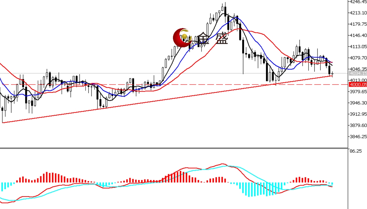 现货黄金周五(11月21日)开市于4076.91美元/盎司。亚欧盘时段,美指延续昨日的K线内徘徊,但价格重心不断下移,午后回落至100美元附近 。黄金震荡下行,价格跌破昨日低点,日内下挫逾1%。截止目前,金价最高4088.38美元/盎司,最低4022.38美元/盎司。黄金承压4100美元关口盘整四天,随着市场降息预期骤减,金价震荡下行至十月底开始的上涨支撑线。多周期走势均偏空,后市偏向回踩四千关口。操作上高抛为主。